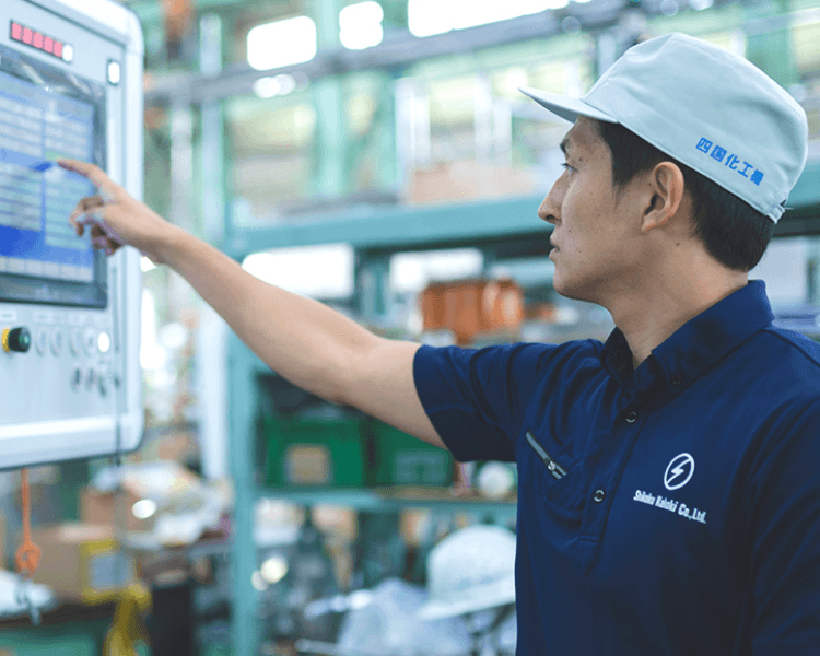 私は小さいときからものをつくることが好きで、エンジニアを目指して就職活動をしているときに、四国化工機を知りました。調べるうちに高い技術力やノウハウを持ち、安定した業績を残しつつも食文化の発展のため、新しいことへのチャレンジを続ける社風に惹かれ入社を決意しました。またハードウェアとソフトウェアの両方を一から設計できることにとても魅力を感じました。四国化工機の充填機は受注生産であるため、お客様ごとにオリジナル性が強く、決まった型がないのでまだまだ進化する余地がある点もおもしろそうだと感じました。それから、充填機で作られているのは、実際の生活の中で手に取ることができる食品であり、身近に感じられることも大きな理由の一つです。