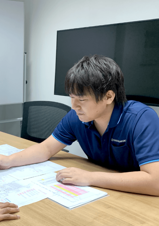 充填機の搬入据付、試運転調整、生産立会いを行っています。タイのお客様に納入している充填機は主に上海のグループ会社で製造しているため、納入前にはお客様と上海に赴き、充填機の安全性や使用感の確認も行っています。実機を直接確認することでお客様も使用感をイメージしやすく、こうしてほしいという意見を参考に改善改良を行います。生産立会い終了後はメンテナンス、改造工事、不具合対応などを実施します。お客様の声を直接聞くことが多いため、要望や不具合に対する早急な対応策を設計者や組立員へ正確に分かりやすく伝えることができるように心がけています。